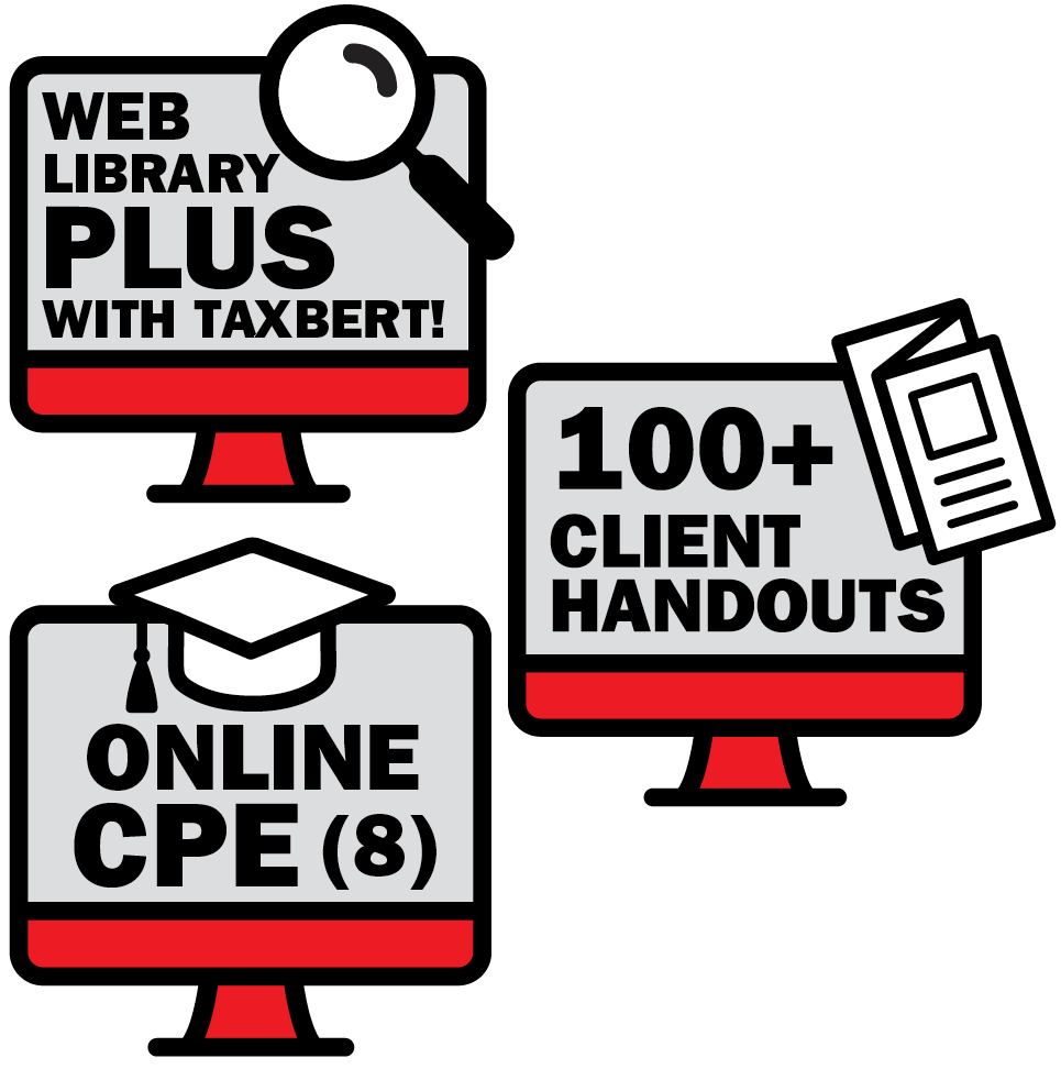 Have multiple preparers and/or multiple locations? Add users to your Digital Combo! The Digital Combo Add User includes a WebLibrary Plus User, Client Handouts User, and 2 Online CPE Hours. Each additional user will have their own Username and Password to access their online subscription.