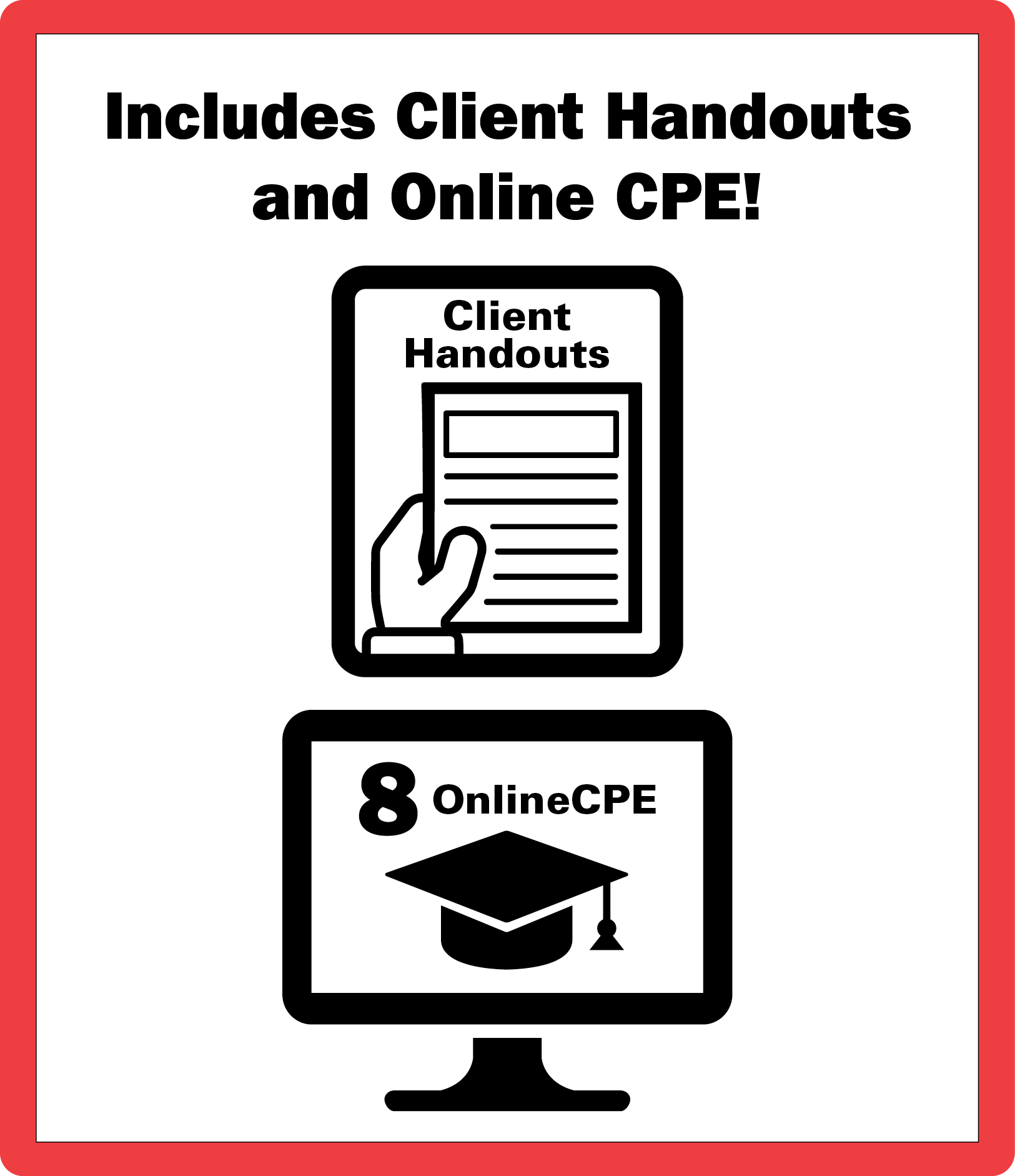Have multiple preparers and/or multiple locations? Add users to your TTB Bundle! The TTB Bundle Add User includes a WebLibrary Plus User, Client Handouts User, Deluxe Edition Plus, and 2 Online CPE Hours. Each additional user will have their own Username and Password to access their online subscription.